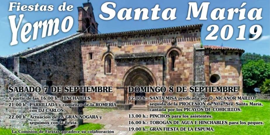 Durante los días 7 y 8 de septiembre Yermo celebra las fiestas de Santa María con dos días de fiesta y actividades múltiples y para todas las edades.